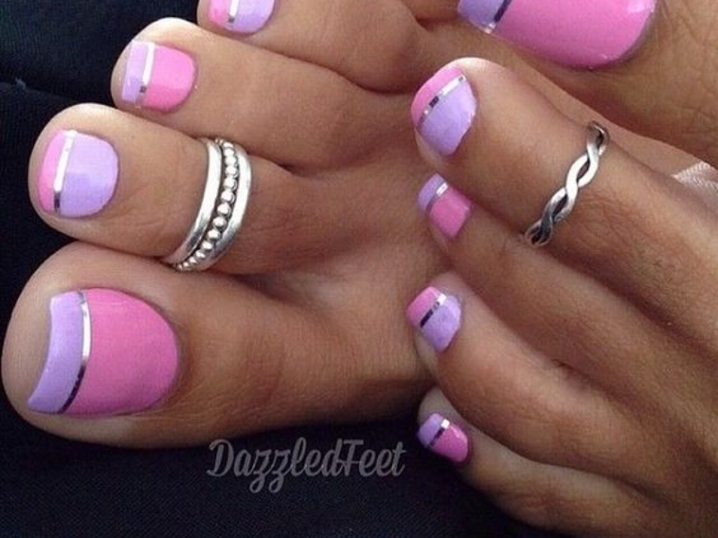 In social situations, the golden stripe pedicure will definitely get interest and appreciation. The glistening appearance of the gold on the base colour produces a magnificent, beautiful visual impact. This pedicure is the ideal accompaniment for any attire whether your event is formal, you're having fun tonight, or you just want to feel great.