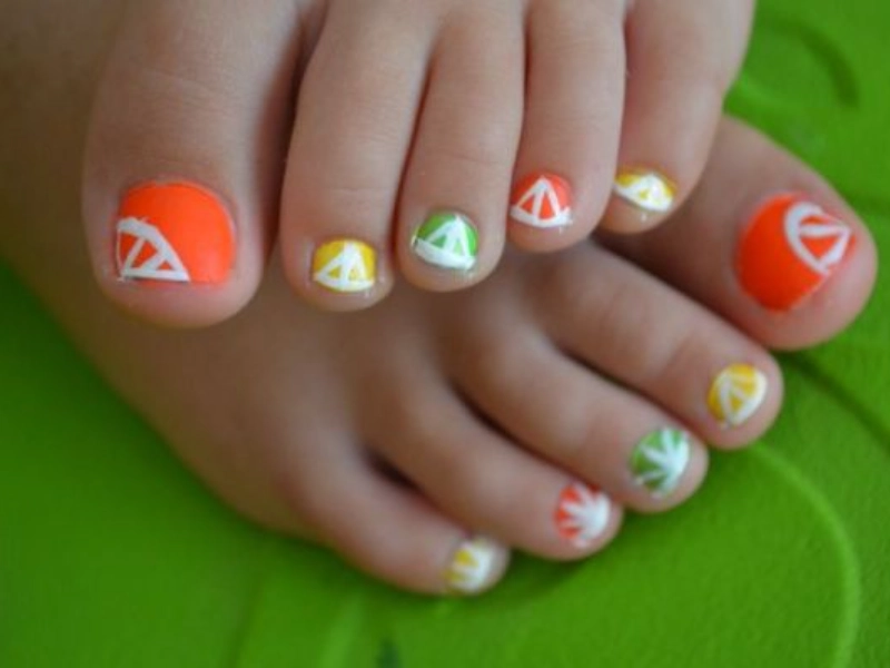 In social situations, the citrus pedicure will definitely grab interest and appreciation. It's a terrific icebreaker since its vivid hues and whimsical design inspire remarks and appreciation. This pedicure is a great option that captures celebration and happiness whether you're lazing by the pool, going to a summer party, or just want to give your regular appearance some fun.